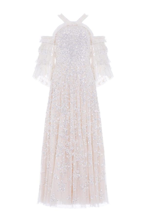 Needle & Thread Bridal | Floral Lace Off-Shoulder Ankle Gown Champagne Wedding/Women