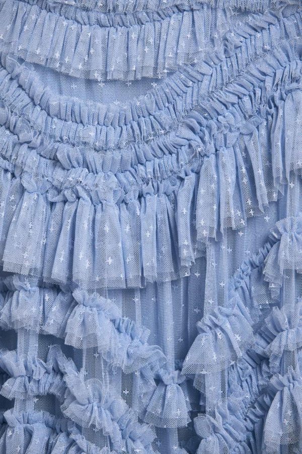 The Wild Rose Short Sleeve Gown in Sky Blue features layers of ruffled tulle and intricate frill tiers,creating a breathtaking,voluminous silhouette. The net tulle skirt adds flattering fullness,making this show-stopping gown perfect for turning heads at any occasion.