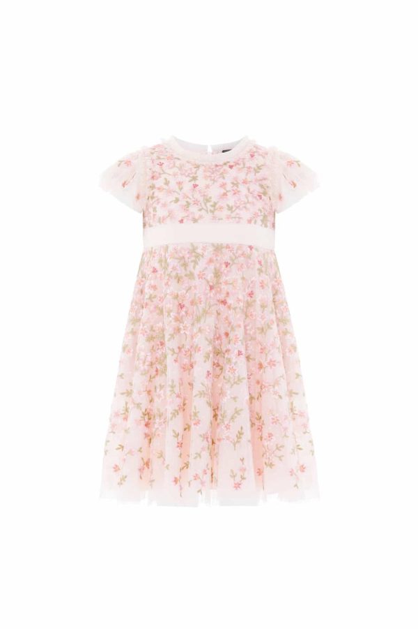 NEW SEASON. The Everett Bloom Kids Dress in Opal/Multi. This design is decorated with whimsical floral embroidery and crafted in soft layered tulle. The relaxed shape and soft colours make it ideal for unforgettable moments. Pairs beautifully with the women’s Everett Bloom Gown from the AW25 collection.