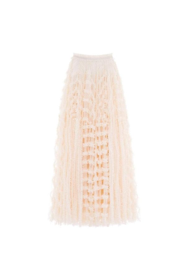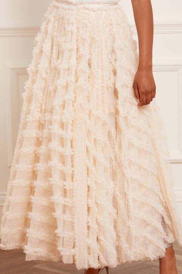 NEEDLE & THREAD EXCLUSIVE. Meet the Florence Ruffle Ankle Skirt in Champagne. This beautiful skirt is crafted with layers of kisses tulle,creating a voluminous romantic look. This ankle-length skirt is designed elegantly with a satin waistband and gathered neatly with tulle trims. Pair with your favourite knit and make an entrance this season.